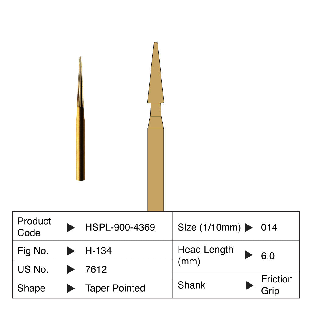 HSPL Carbide Bur Taper Pointed Trimming & Finishing Friction Grip 7612 5/Pack Currently not accepting retail orders.. Currently not accepting retail orders..